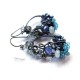 natural Moss Aquamarine 3mm stones surrounded by Swiss Topaz rondelles, peacock Pyrite and Iolite briolettes.