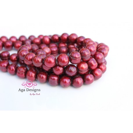 Center drilled round shape Garnet fresh water pearls 8.5-9mm