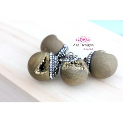 Druzy connector in gold frame brown color style 3